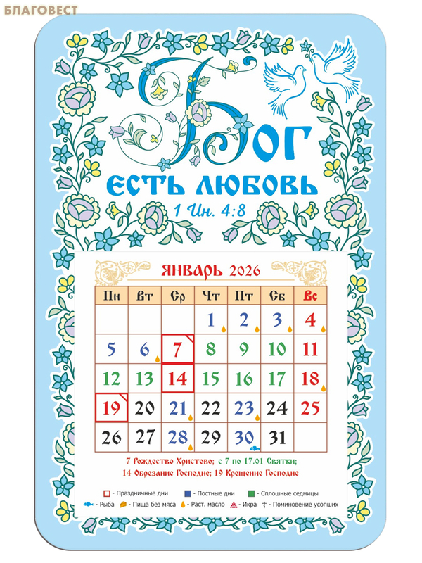 Православный календарь-магнит с отрывным блоком Бог есть любовь на 2026 год