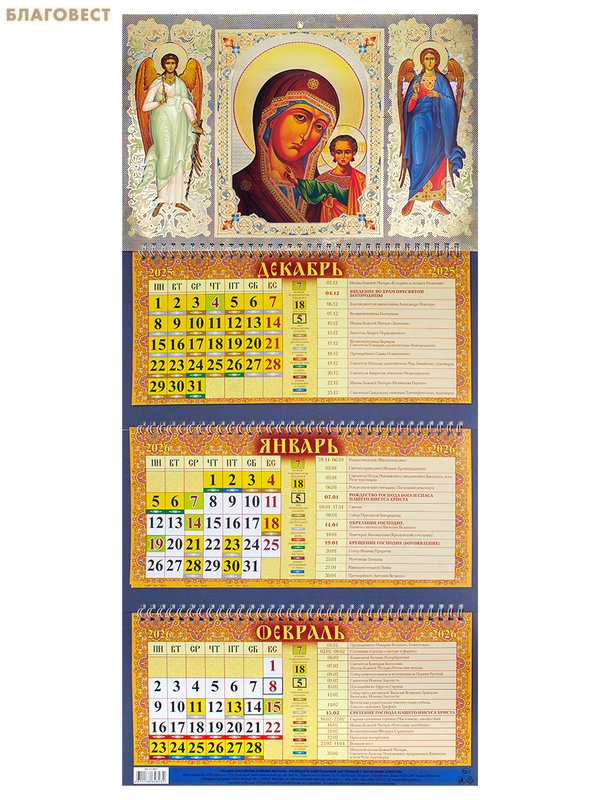 Православный квартальный календарь Пресвятая Богородица «Казанская» на 2026 год